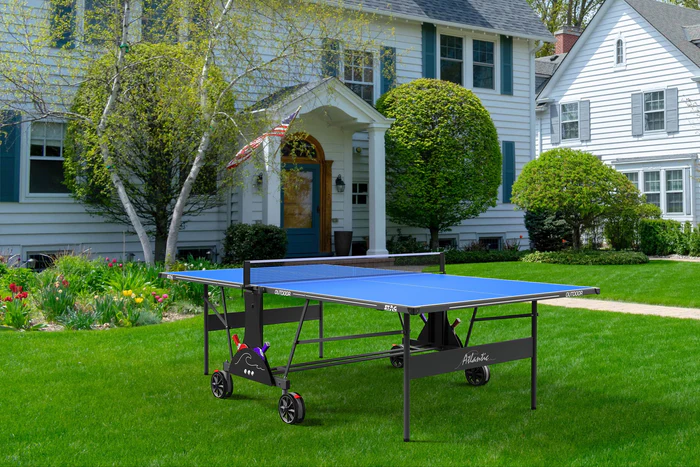 2. Proprietary PRO-TEC 4 weatherproof OUTDOOR top for consistent ball bounce and unmatched durability. || Adjustable leg levelers ensure a level playing surface.