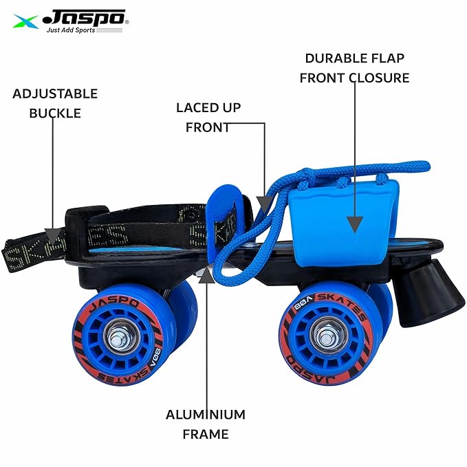 jaspo Kids G-Force Adjustable Senior Roller Skates Outdoor Wheel Blue (6-14 Years Age