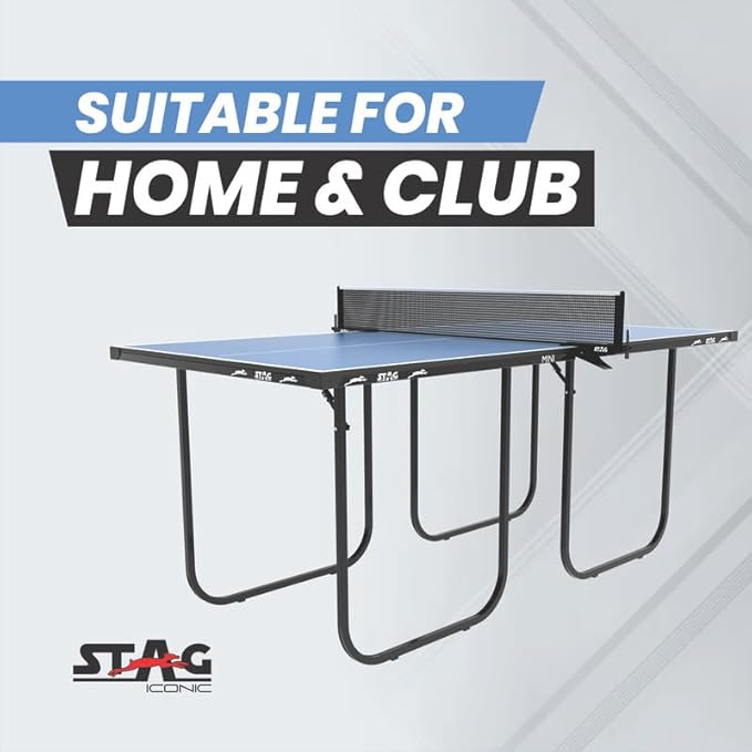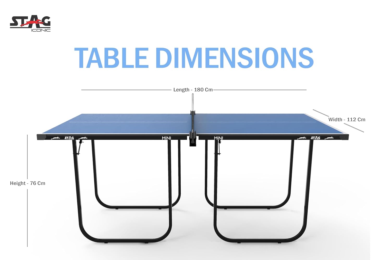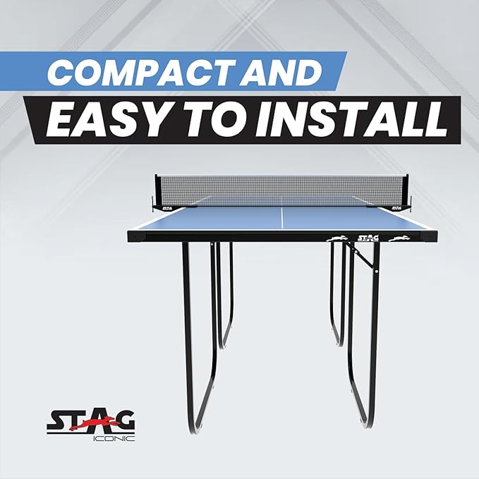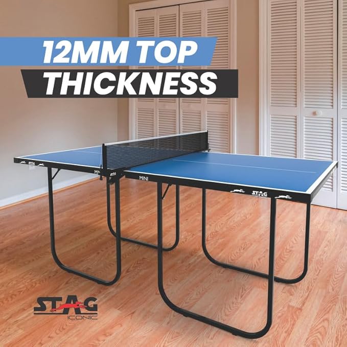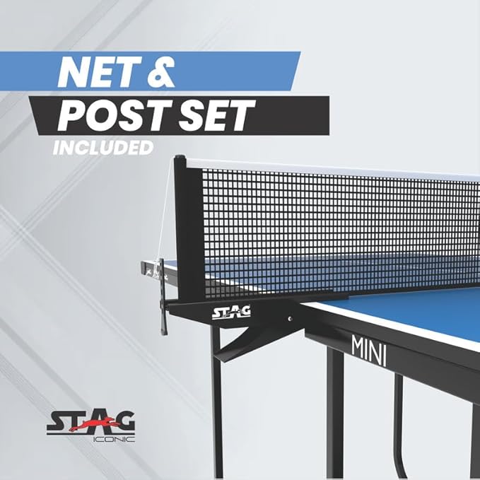 STAG Mini Table Tennis Table | Compact 12mm Indoor Ping Pong Table with Foldable Design, Easy Storage, Durable Frame & Net Set | Space-Saving Table for Home & Recreation
