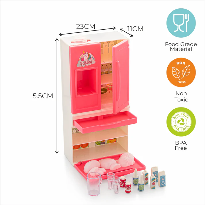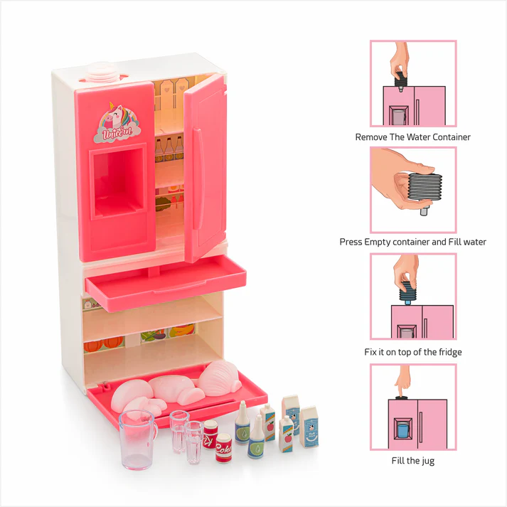 - All-in-One Unicorn Fun: With a proper kitchen set up and a fridge with a working water dispenser, and colorful cooking accessories including plates, cutlery, and pretend ingredients, inspires the inner chef in your child.