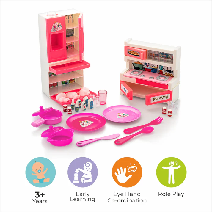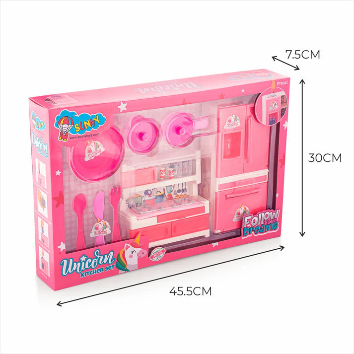 Designed for hours of fun, this pink-themed Unicorn Kitchen Playset features vibrant cooking accessories perfect for creative role-play. Encourages social skills and imaginative cooking tasks while enhancing coordination. Crafted with safe, durable materials, it’s ideal for kids aged 3Y+. Cook up a magical adventure!